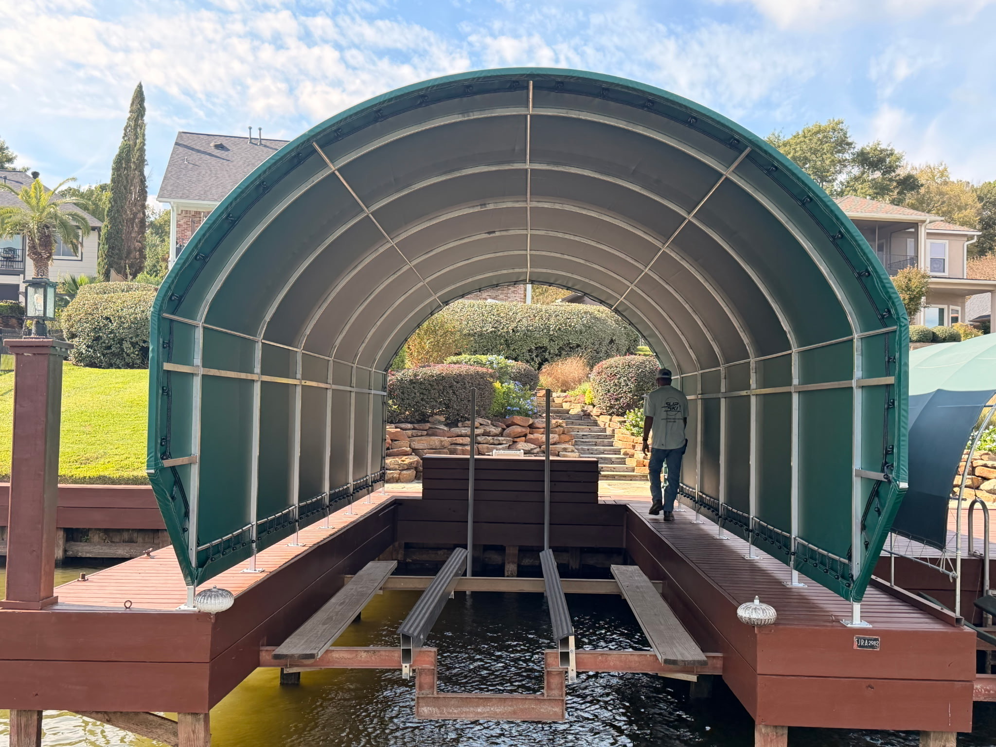 Maintain your boat’s value with the ultimate in boat protection with a custom aluminum boat dock cover from SlipSki. Designed and built to provide superior coverage and protection, our aluminum boat dock covers are custom-fitted to your dock. Our covers offer the boating industry the most versatile system with the easiest installation. SlipSki Boat Slip Covers allow you to tuck your watercraft completely underneath the frame, away from the harsh sun and wind.